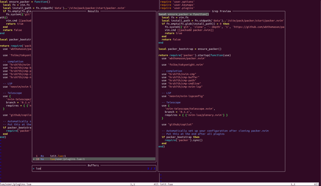 本記事では例としてNeovimプラグインマネージャーの Packer を使ってインストールします。 (※現在、Packerはメンテナンスが停止しており、新規導入には lazy.nvim が推奨されていますが、既存の設定への追加例としてPackerで解説します)