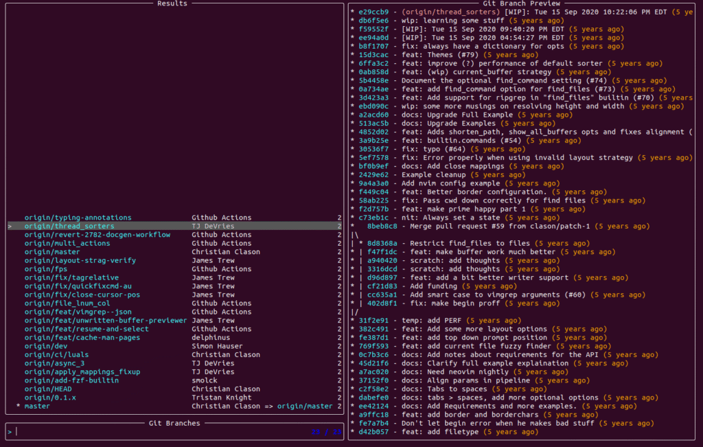Gitのブランチ名を検索し、候補ブランチのコミットログ等をプレビューできます。