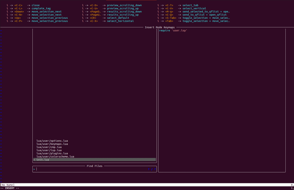 毎回 :Telescope ... と入力するのは手間なので、よく使うコマンドにはキーマップ(ショートカット)を設定しましょう。