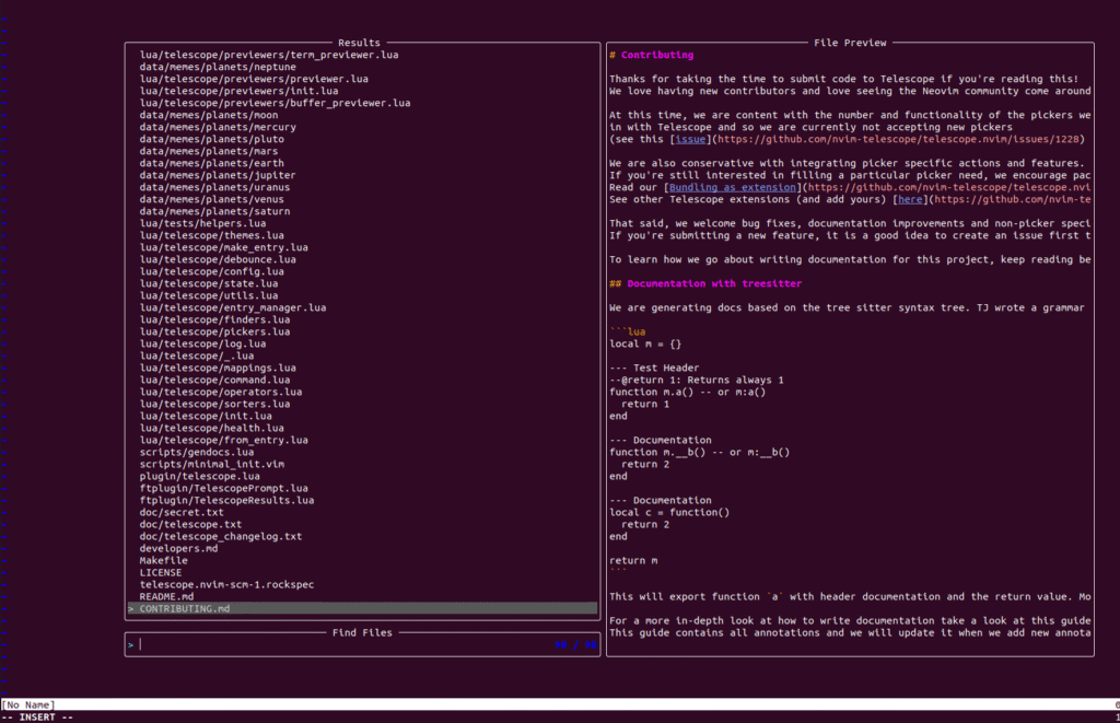 本記事では、Neovimのファジーファインダー・プラグインである Telescope のインストール方法と使い方を紹介します。